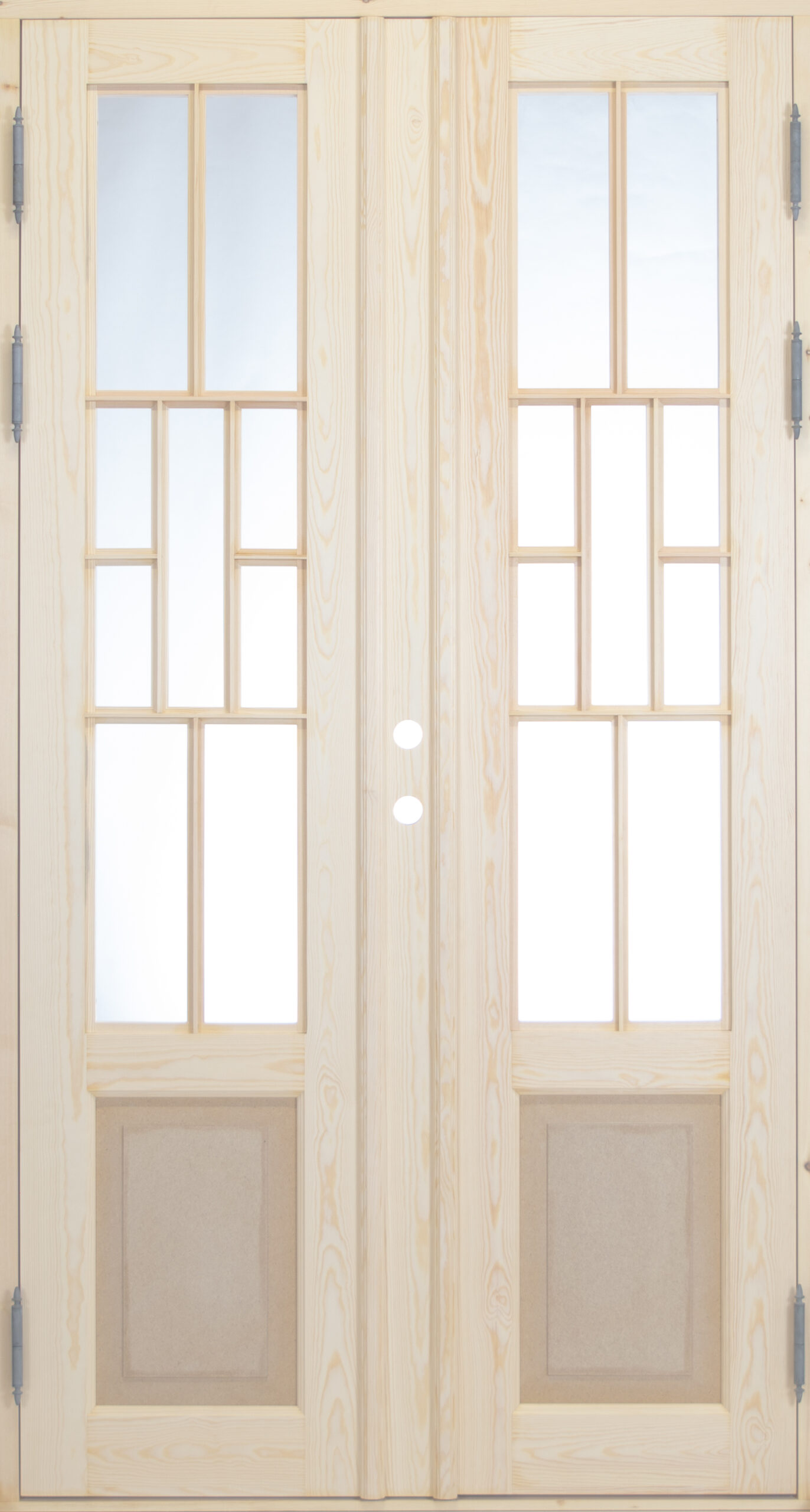 - Inget pålimmat skivmaterial – dörren är helt i massiv furu